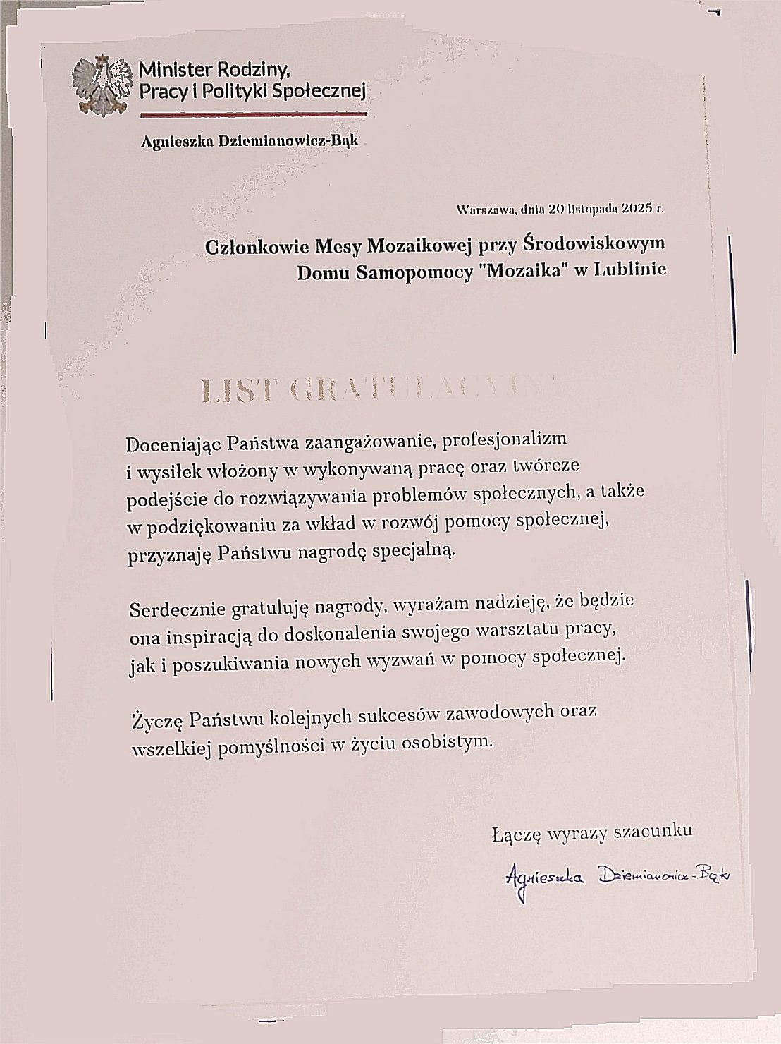 Ta akcja została doceniona i dostaliśmy od pani minister wszystkiego najlepszego, to znaczy dyplom i finansowe wsparcie, które pozwoli nam urządzić dla klubowiczów obóz żeglarski w Jastarni, tak aby poczuli zapach morza. Warto wspomnieć, że oprócz darowizn urzędowych, w tym od miasta Lublina, wspierają nas funkcjonalnie lubelskie kluby żeglarskie. Integracja istnieje już 10 lat i rozkręca się powoli, ale systematycznie również przez rosnącą liczbę wolontariuszy. Marzy nam się wyjście na szersze wody, choćby na Zatokę Gdańską czy Zalew Szczeciński, ale do tego potrzebny byłby jacht zapewniający uczestnikom niezbędne warunki. Pożyjemy – zobaczymy.