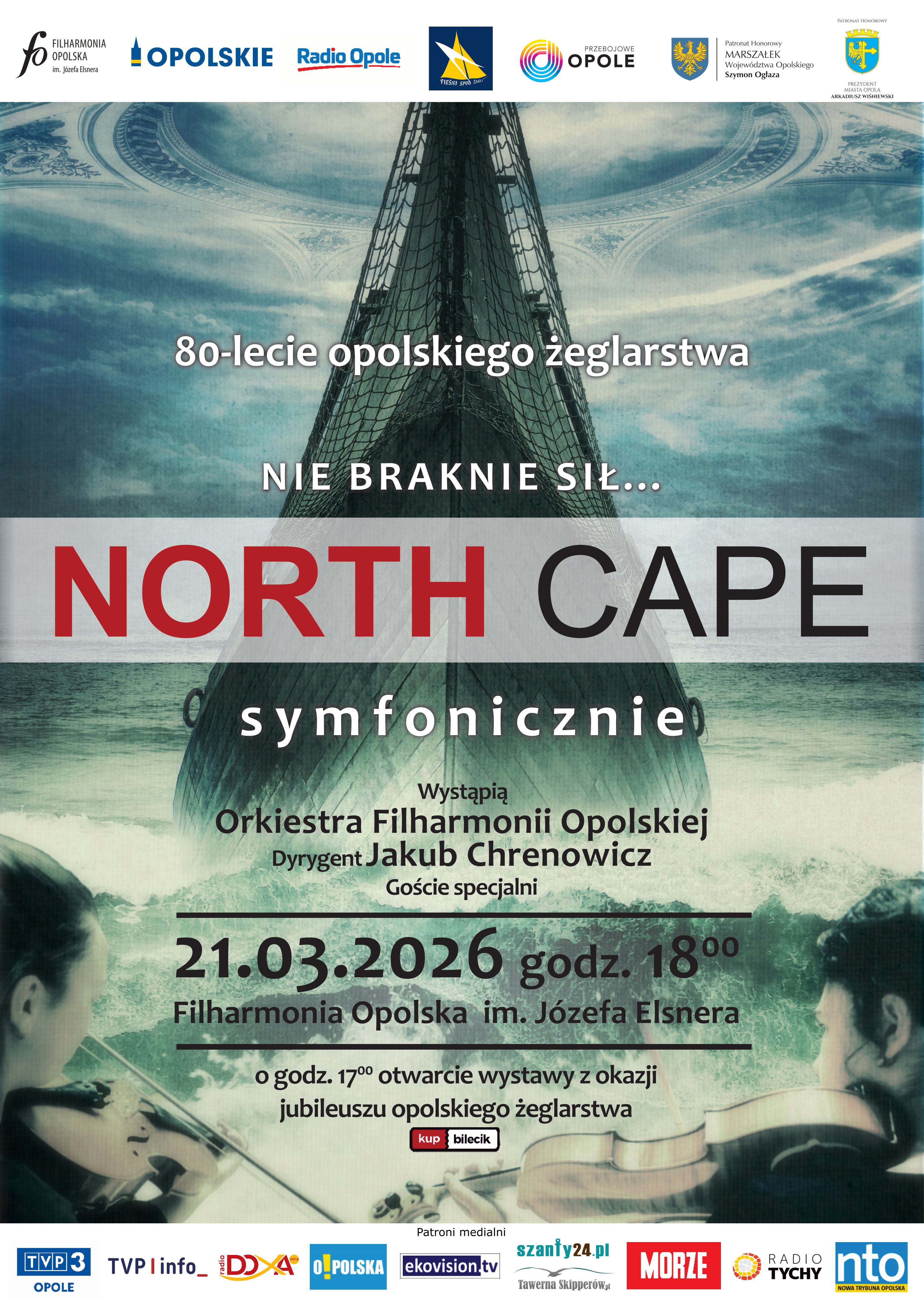 Opolskie Stowarzyszenie Pieśni spod Żagli, Filharmonia Opolska im. Józefa Elsnera, zespół North Cape oraz Radio Opole zapraszają: 21 marca 2026 roku Filharmonia Opolska stanie się miejscem wydarzenia, jakiego jeszcze nie było w tej części Europy. Z okazji 80 lat opolskiego żeglarstwa odbędzie się niezwykły koncert:
